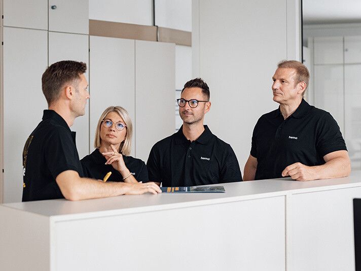 Homeoffice oder Büro? Entscheidend sind für uns die optimale Zusammenarbeit im Team und die Effizienz bei der Erledigung unserer Aufgaben. Das ist im Sinne unserer Kunden - aber auch unserer hema visioneers, denn wir wissen, wie wichtig Freizeit ist. Unsere Erfahrung hat gezeigt, dass in Absprache mit der Abteilung bis zu zwei Tage pro Woche auch von zu Hause oder unterwegs gearbeitet werden können, während die Teams an den übrigen drei Wochentagen gemeinsam an Ihren Projekten arbeiten. Damit das auch für Mütter und Väter funktioniert, bezuschussen wir zum Beispiel die Kinderbetreuung. Modernste Tools für die Online-Zusammenarbeit und eine Ausstattung mit entsprechenden Systemen gehören natürlich ebenfalls dazu.